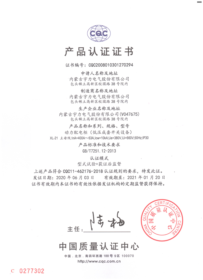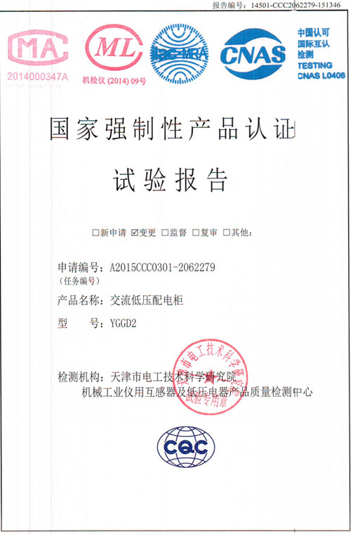 YGGD2交流低壓配電柜(CQC認(rèn)證)