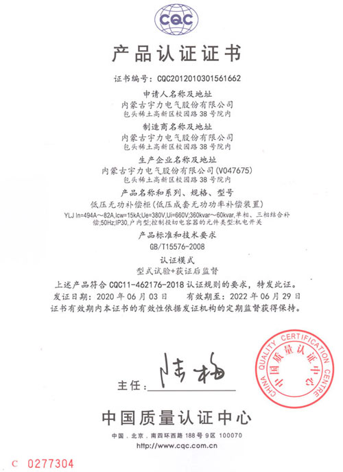 YLJ低壓無功補償柜(CQC認(rèn)證)
