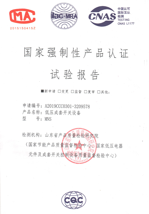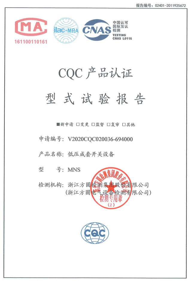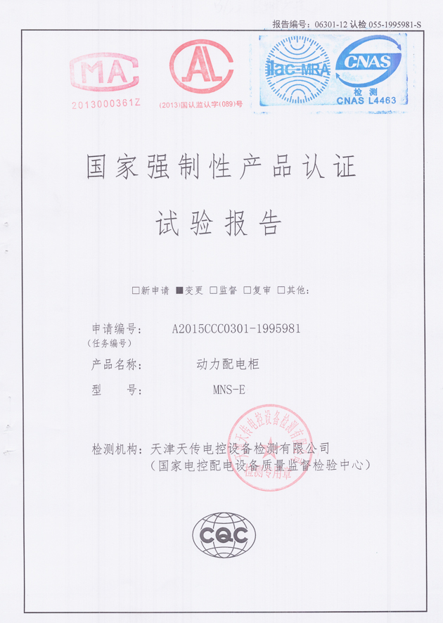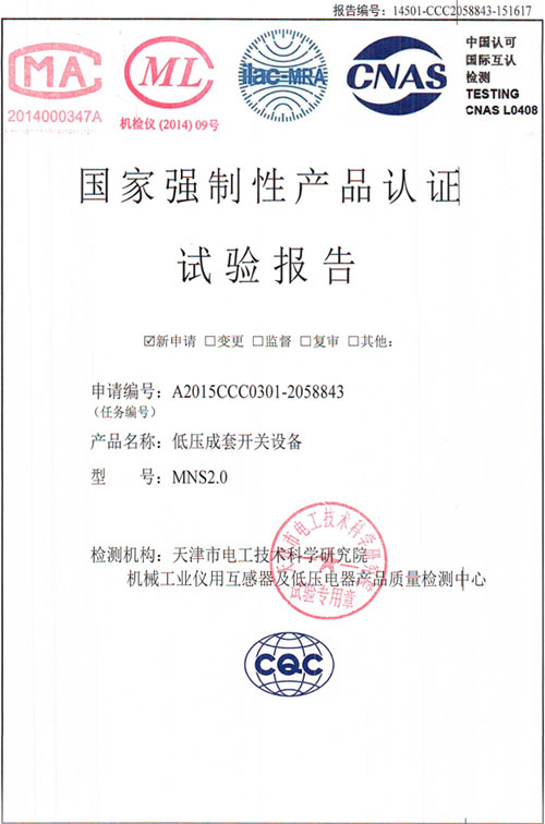 MNS2.0低壓成套開關(guān)設(shè)備(試驗報告)