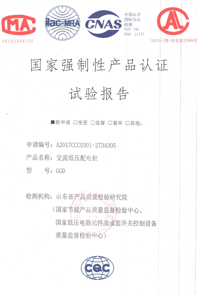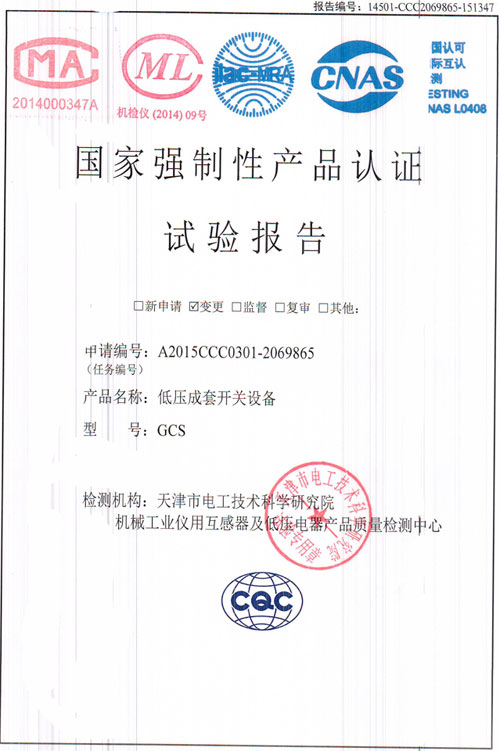 GCS低壓成套開關(guān)設(shè)備(試驗報告)