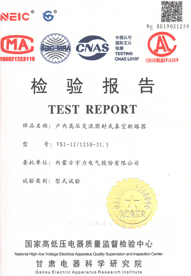 VS1-12/1250-31.5固封式真空斷路器(檢驗(yàn)報(bào)告)