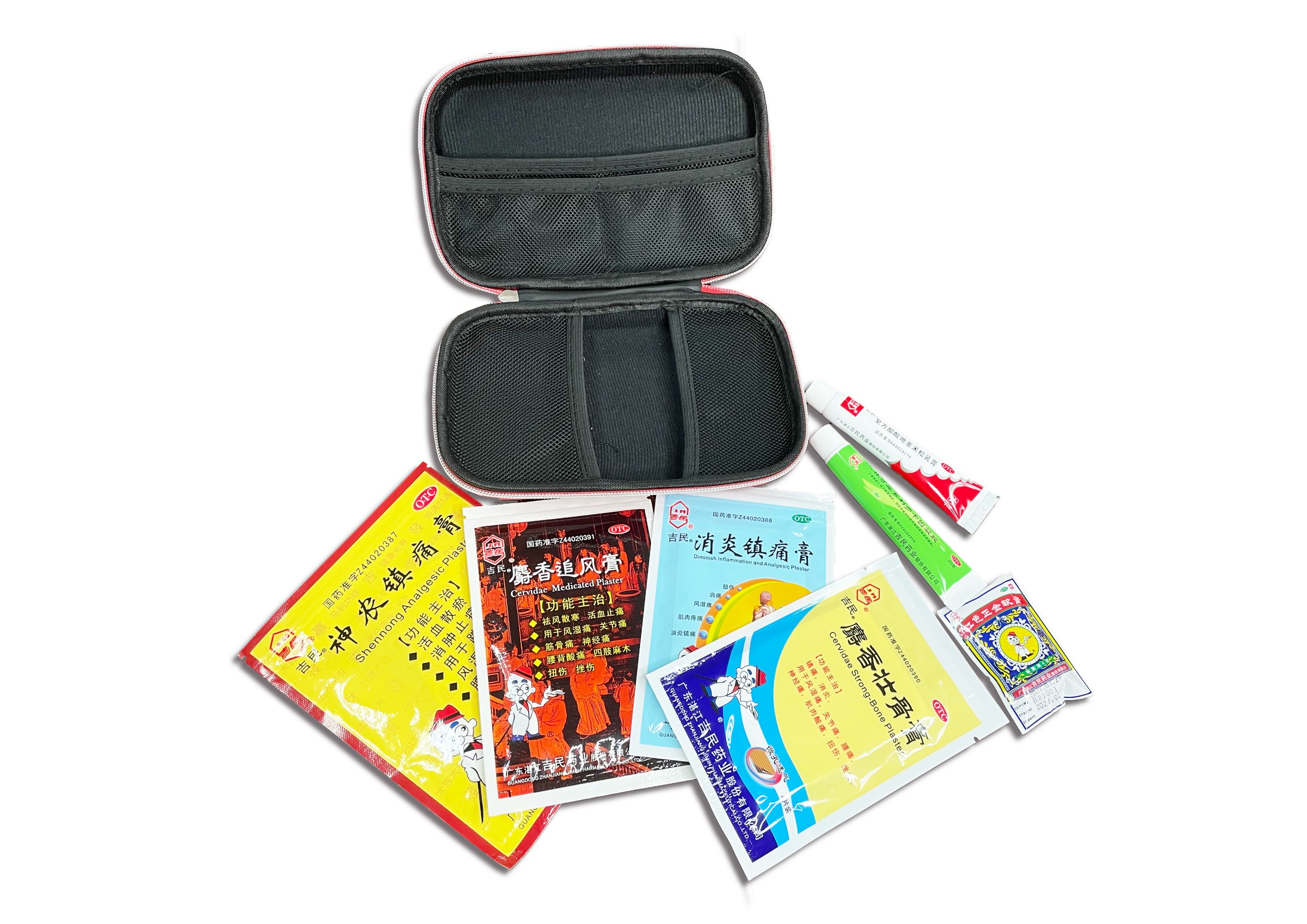 內(nèi)含麝香追風(fēng)膏、麝香壯骨膏、消炎鎮(zhèn)痛膏、林可霉素利多卡因凝膠、復(fù)方醋酸地塞米松乳膏、紅色正金軟膏等旅行常備外用產(chǎn)品。