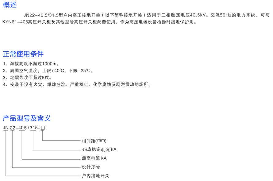 JN22-40.5/31.5戶內(nèi)高壓接地開(kāi)關(guān)