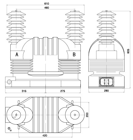 本型電壓互感器為環(huán)氧樹指真空澆注全封閉單相戶內(nèi)結(jié)構(gòu), 主要適用于額定頻率為50Hz或60Hz, 額定電壓35kV及以下電力系統(tǒng)中作電能計暈、 電壓測量用。