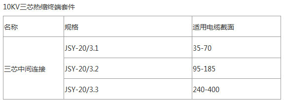 3芯,廣泛用于8.7/15KV及以下電壓等級交聯(lián)電纜或油浸式電纜終端。與傳統(tǒng)的電纜附件相比,它具有的優(yōu)點:體積小,重量輕,安全可靠,易于安裝。