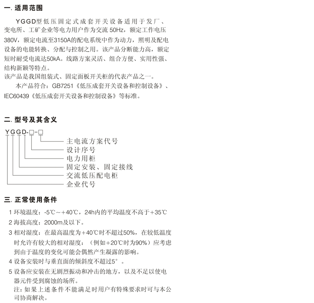 YGGD型低壓固定式成套開關(guān)設(shè)備