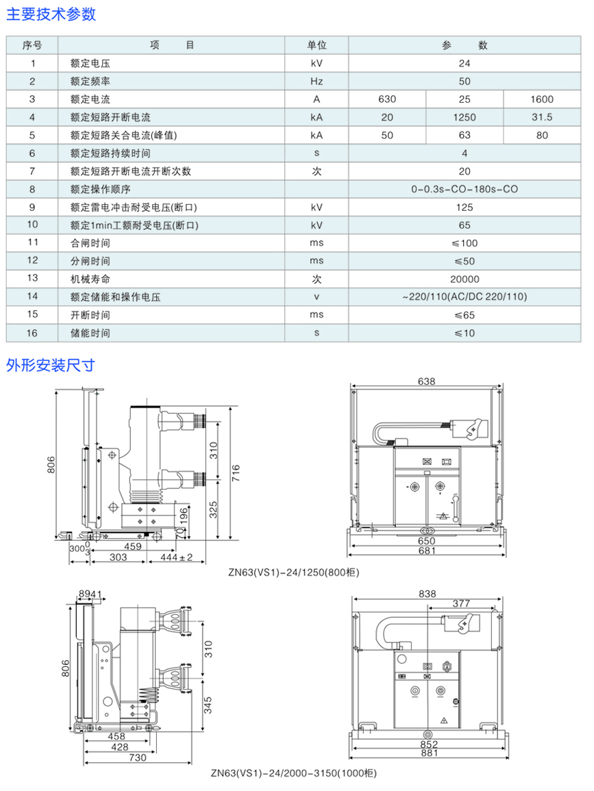 ZN63(VS1)-24戶內(nèi)高壓真空斷路器
