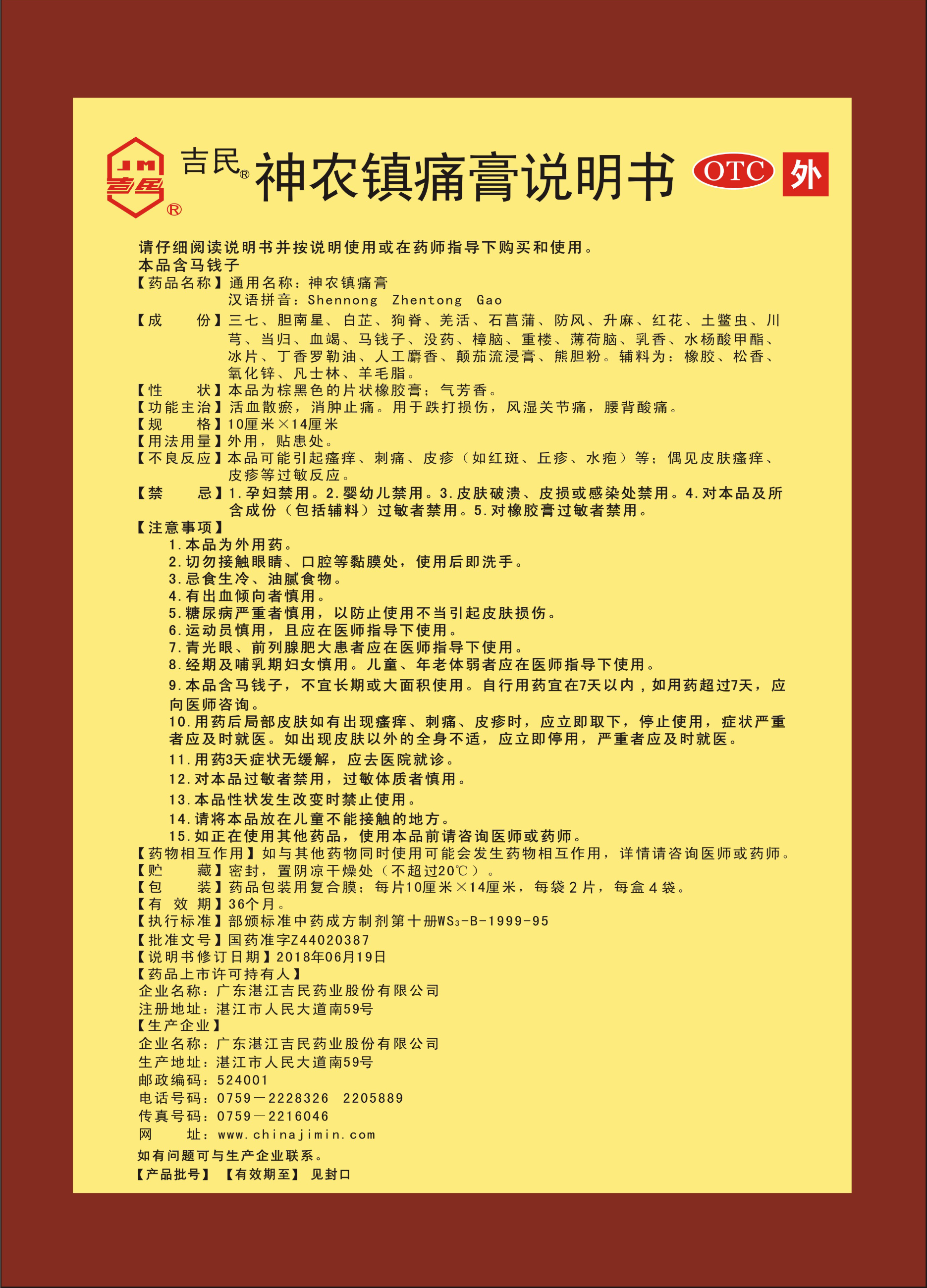 - 產(chǎn)品名稱 神農(nóng)鎮(zhèn)痛膏