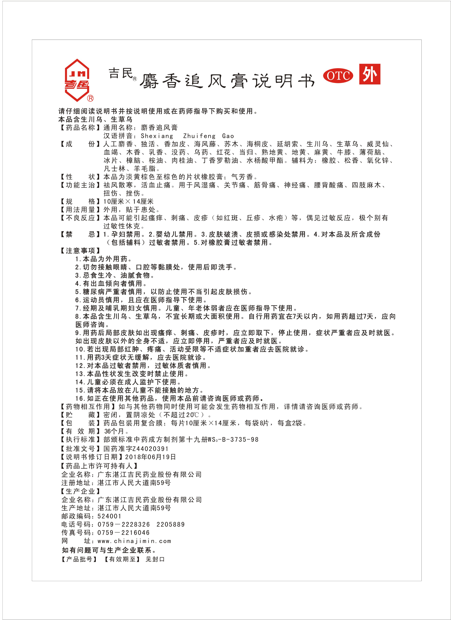 - 產(chǎn)品名稱 麝香追風(fēng)膏