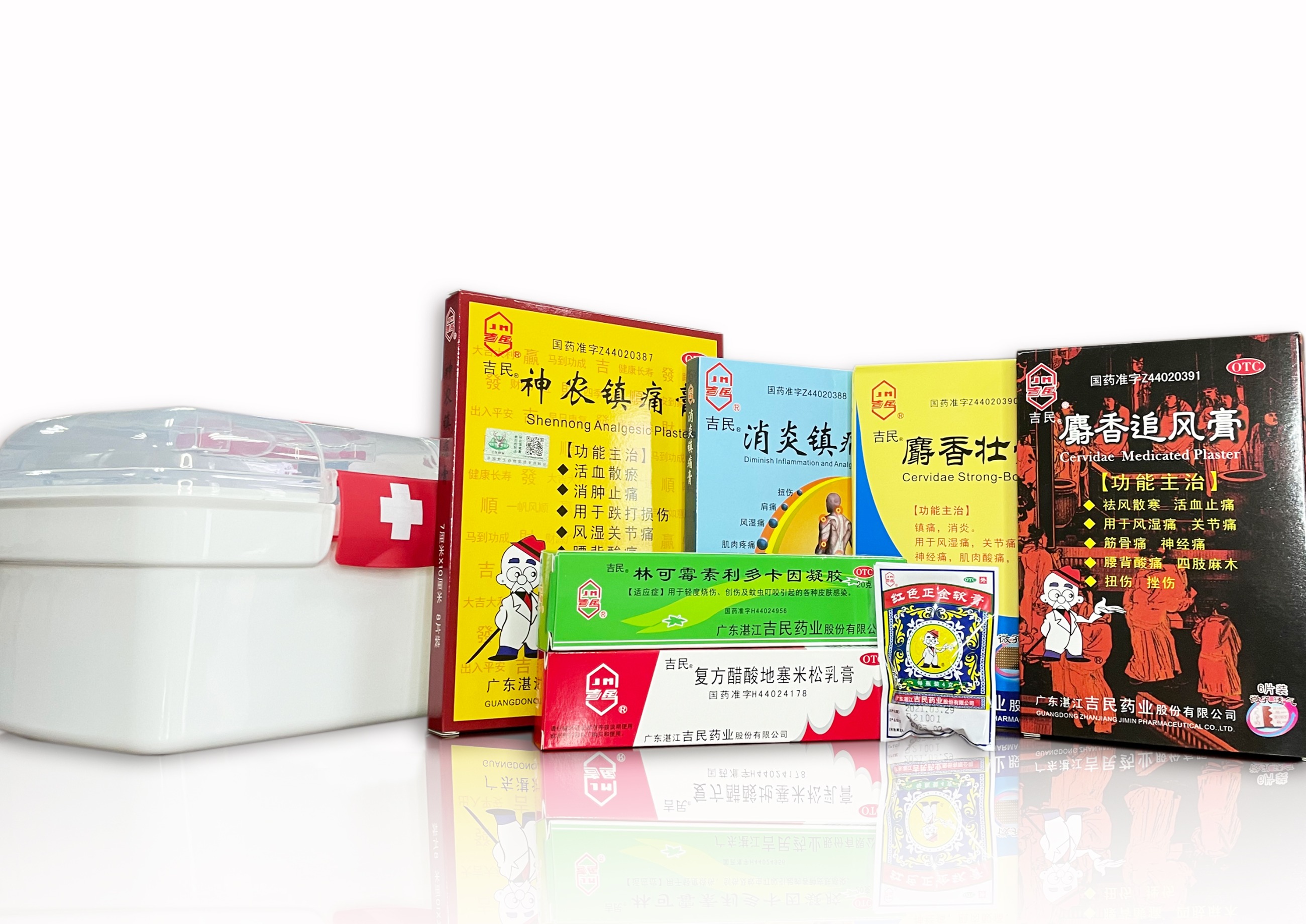 內含神農鎮(zhèn)痛膏、麝香追風膏、麝香壯骨膏、消炎鎮(zhèn)痛膏、林可霉素利多卡因凝膠、復方醋酸地塞米松乳膏、紅色正金軟膏等家庭常備外用產(chǎn)品。